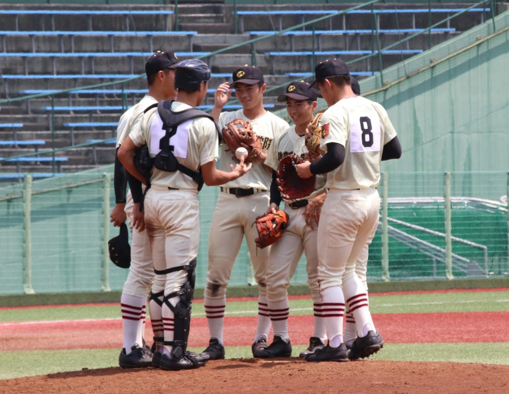 3回まで一人の走者も出さぬ好投を見せた田中からマウンドを託された投手陣も山本悠介(3年)、佐野奨多(3年)、芳賀徳裕(3年)とつないで見事な継投。