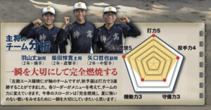 2025年10月号 CHARGE! 神奈川版 チーム分析神奈川/静岡版 2025年秋【主将の覚悟】柴田惇寛主将 羽山丈副将 矢口哲也副将 「一瞬を大切にして来夏に完全燃焼する」 2025年11月4日 2025年11月3日 月刊高校野球CHARGE!編集部 Screenshot 2026年夏へ向かうチームは柴田惇寛主将、羽山丈副将、矢口哲也副将を軸に一丸となる。 (主将)柴田惇寛主将(2年=遊撃手)羽山丈副将(2年=捕手)矢口哲也副将(2年=中堅手) 一瞬を大切にして完全燃焼する 「左腕エース篠晴仁が軸のチームですが、秋予選は打力で3連勝することができました。各リーダーがメニューを考えて、チームの力に変えていきます。今季のスローガンは『完全燃焼』。夏に悔いのない戦いをみせるために一瞬を大切にしていきたいと思います」 希望ヶ丘 Facebook Twitter はてブ Pocket Feedly