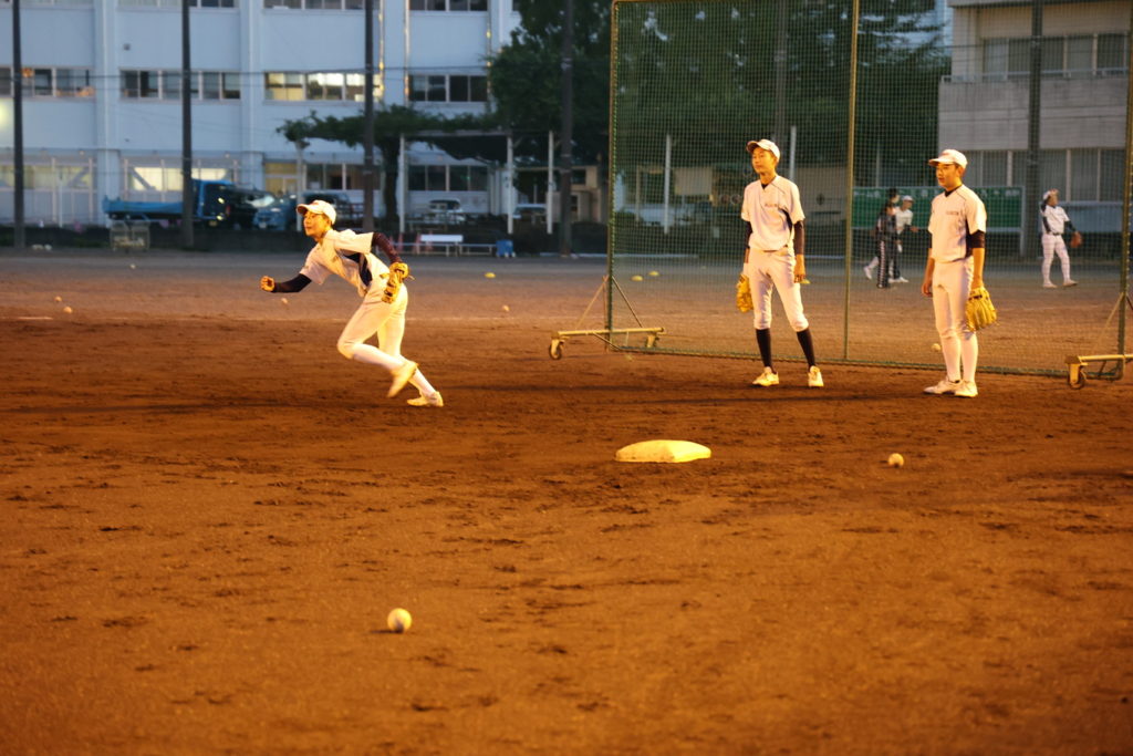 日々の練習は4か所でのノックから始まる。「守りでリズムを作り、攻撃に繋げるのが僕たちのスタイル」と話す松下。近藤監督や、夏で引退した3年生がノッカーを務め、多くの打球を受けることで、体に染み込ませていく。