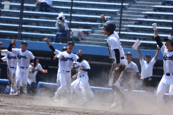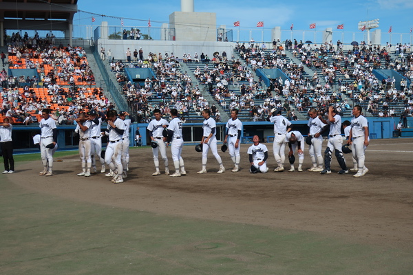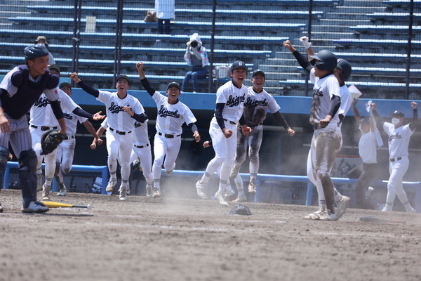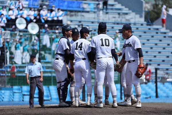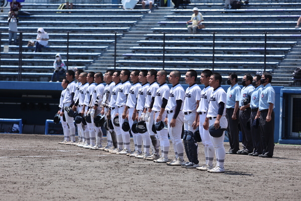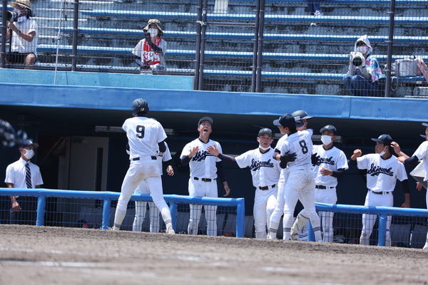 3大会連続優勝の夢はついえた。 初戦は強豪の磐田東と対戦。エースの法月彰弘(3年)が完投し、プロ注目の吉田優飛(3年=投手、外野手)が本塁打を放つ好スタートを切る。