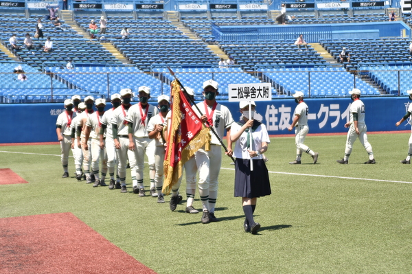 二松学舎大附は準決勝で帝京に勝利し決勝へ駒を進めた。対するは、勢いに乗って決勝進出を決めた日体大荏原となった。二松学舎大附の先発・左腕エース辻大雅は立ち上がりから丁寧に低めを突いて日体大荏原打線を封じていく。静かな立ち上がりとなった試合は2回までスコアレス。3回に二松学舎大附が、中川龍斗の犠飛で先制すると、4回には菊池真伍の左前適時打で2点目を奪う。いずれも先頭打者の出塁を活かした抜け目ない攻撃からの得点だった。さらに6回には辻の2点三塁打、親富祖凪人のタイムリーで3点を追加し、ゲームの主導権を一気に引き寄せた。辻は「監督から『この打席では、ピッチャーではなくバッターになれ』とアドバイスをもらって打席に立った。チームのために得点を奪うことができて良かった」と会心の打撃を振り返った。