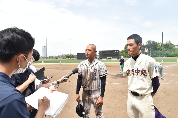 当日はマネージャーたちが始球式を行ったあとにプレーボールとなった。ゲームは大会さながら白熱した展開となった。西邑楽は3対4で迎えた9回に、山本凛の中前タイムリーで同点に追いつく。だが、9回裏にエース大関龍司主将が1点を奪われて、無念のサヨナラ負けとなった。藤岡中央は、西邑楽の思いに負けない気持ちでゲームへ臨み、勝ち切ってみせた。試合後、西邑楽の選手たちは目を潤ませて健闘を称え合った。藤岡中央・澤入湊主将は「4対4の同点で終わりにしたい気持ちもあったが、最後にチームのみんなが力をみせてくれた。同じ高校野球の仲間として、交流試合ができて良い思い出になった」と話した。西邑楽・大関主将は「最後に自分が打たれてしまって悔しい気持ちもあるが、交流試合が出来て良かった。応援してくれた人たちに感謝したい」と汗をぬぐった。西邑楽・柳澤監督は「良い相手に恵まれて交流試合が出来た。最高のゲームだった」と選手たちを称えた。