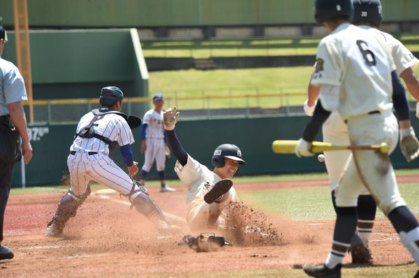 相手の状況は関係ない。決勝で勝って優勝旗をつかむのみ。駆け引きなしの真っ向勝負でゲームに向かった。3回に2点を先制されたが、4回に梅山浩輝のタイムリー三塁打などで2点を奪い同点へ。2対3で迎えた9回裏に曽我雄斗の三塁打から、小林優太のタイムリーで土壇場で同点に追いつく。白熱の攻防は3対3のまま延長タイブレークへ突入。一進一退の展開となったが、11回に2失点して3対5の結果で終えた。