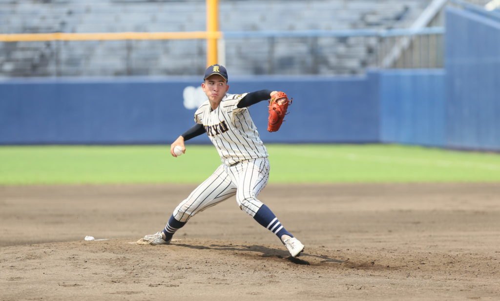 6対2とリードした中で、8回からは最速144キロ右腕・蓼原慎仁(3年)がマウンドに立った。