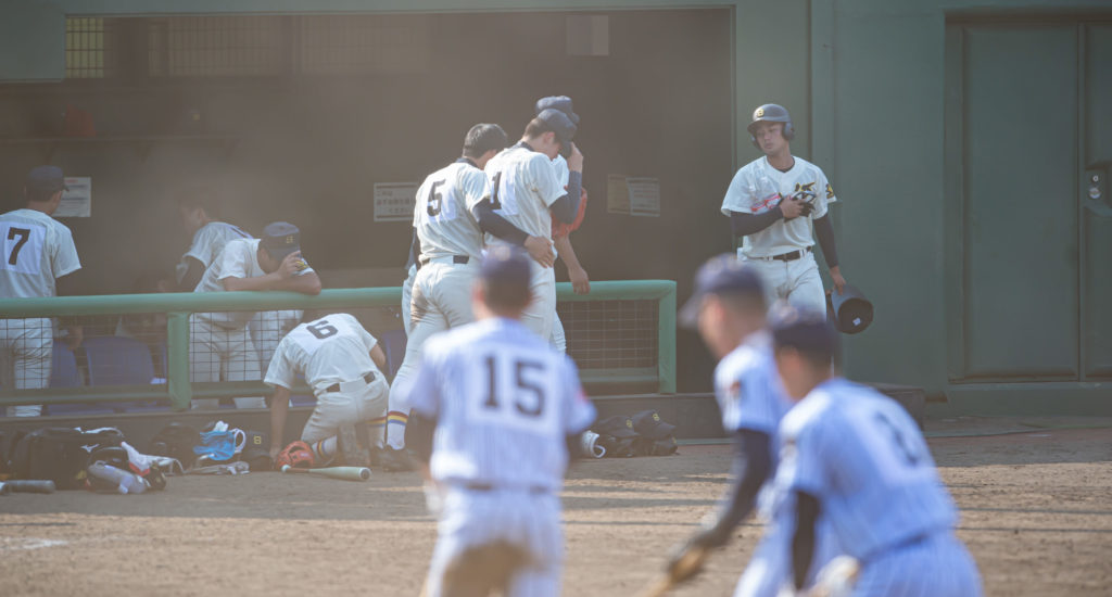 エースが苦しむ中、5回に1番・島本 康平、2番・高沢春佑の連打で2点を返すと、6回には今大会絶好調の6番・石田清がレフトへ特大アーチと島本のこの日2本目のタイムリーで計2点。