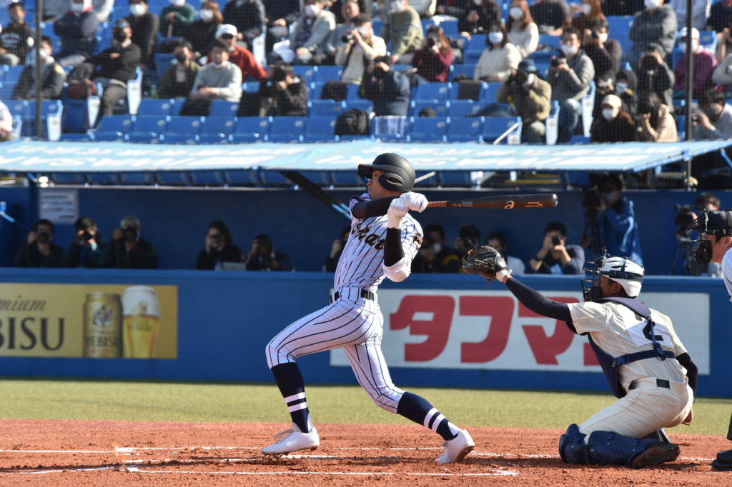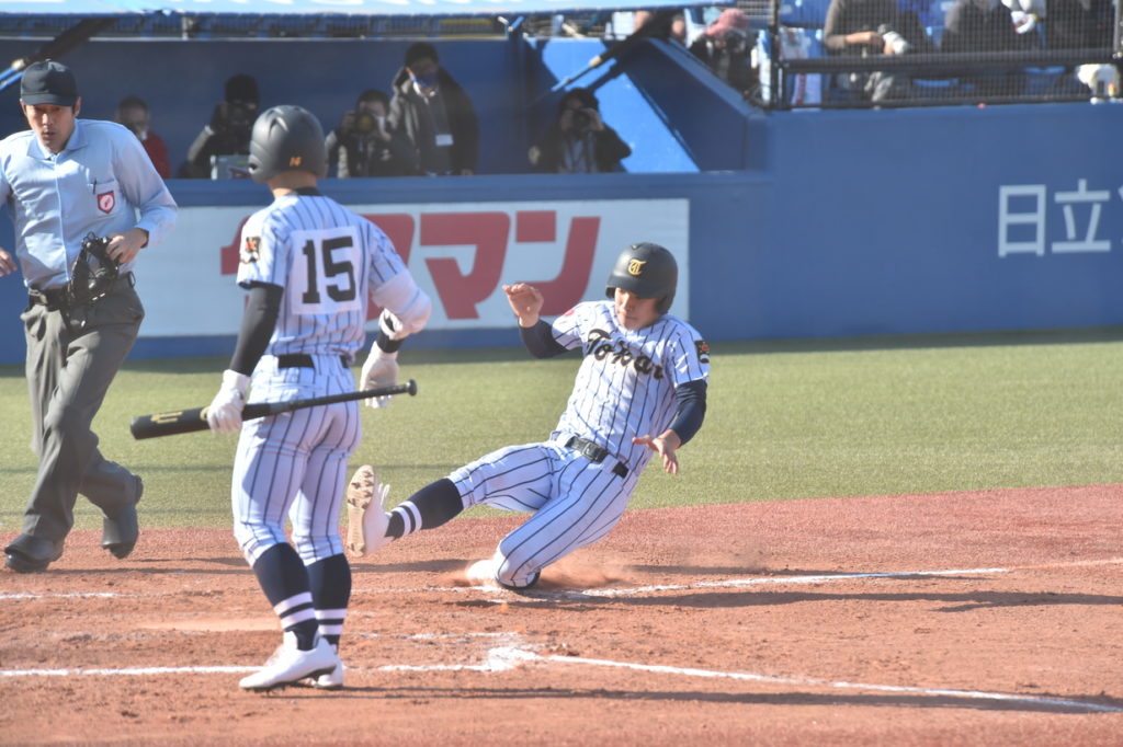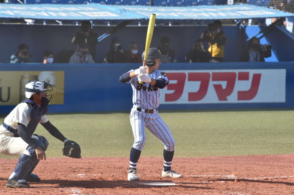 東海大菅生は、エース本田が1回表に2死2塁のピンチを迎えたが無失点で切り抜け、1回裏に4番・堀町で先制すると、2回に本田のタイムリーで2点目を奪う。緊迫感漂うゲームは、東海大菅生エース本田と、日大三エース岡村海琉の両左腕のテンポの速い投げ合い。5回に日大三が1点を返すと6回を終えて2対1。