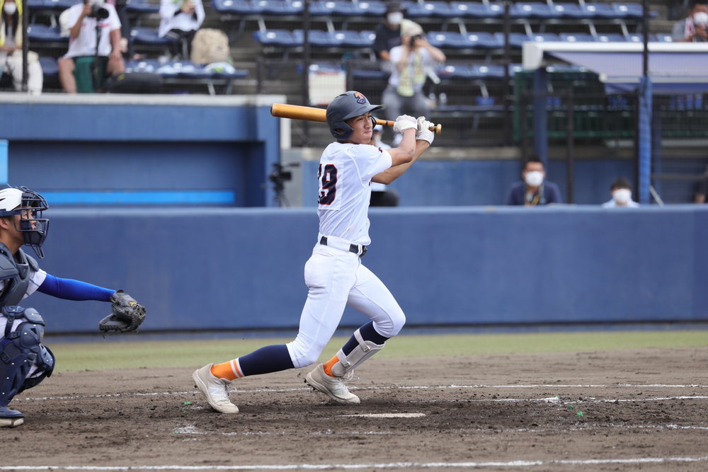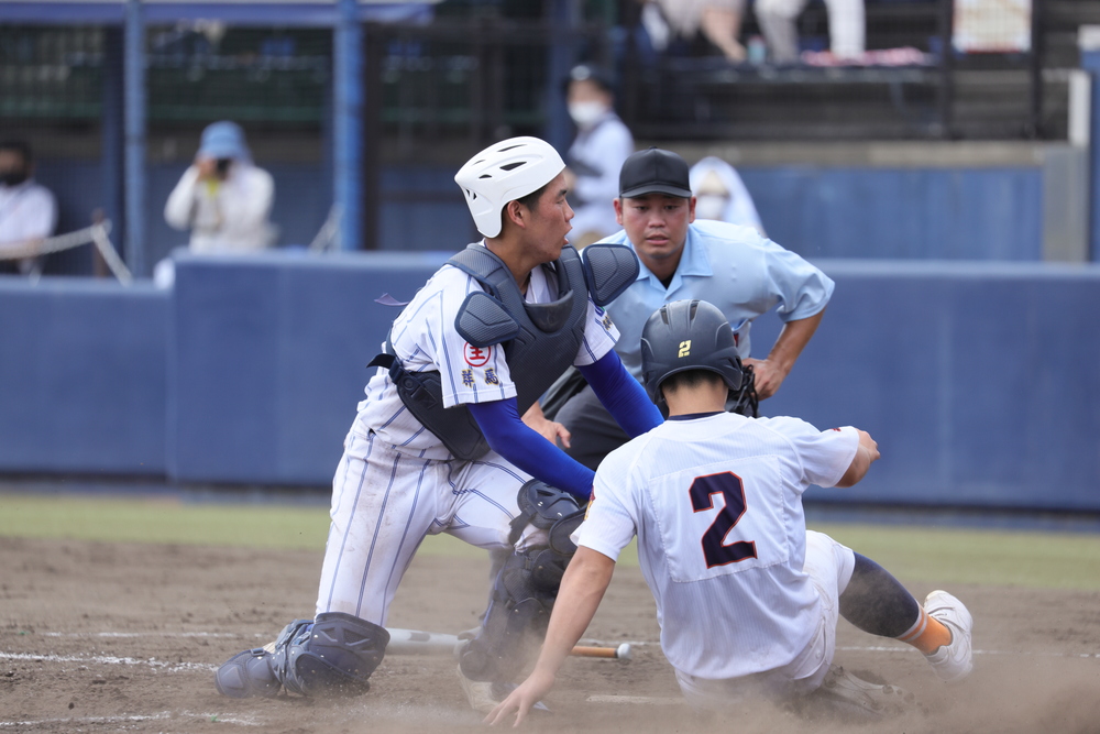 健大高崎は、春季大会準々決勝で東農大二に完封負け、チームは春の敗戦を機に生まれ変わった。今大会準々決勝では東農大二に6対0で勝利し準決勝へ駒を進めた。福田治男監督率いる利根商は、3回戦で高崎商に7対6の逆転勝利、準々決勝では渋川に勝ち、4強入りを果たした。 健大高崎は初回に小澤周平の適時二塁打、堀江晃生の犠飛などで3点を奪い、ゲームを優位に進めていく。利根商は先発・髙輝が初回こそ3失点したものの2回以降に立ち直っていく。6回に保坂陽呂の適時二塁打で1点を返し反撃態勢となったが、その裏に健大高崎・小澤の3点本塁打などで6失点し、1対9で7回コールドゲームとなった。健大高崎は盤石の戦いで決勝へ。利根商は、福田監督体制3年目でベスト4進出を果たしたが、健大高崎の壁に弾き返された。福田監督は「北毛初の甲子園という目標達成のためにこれからも挑戦していく」と語った。健大高崎の「強さ」と、利根商の「可能性」を感じたゲームだった。