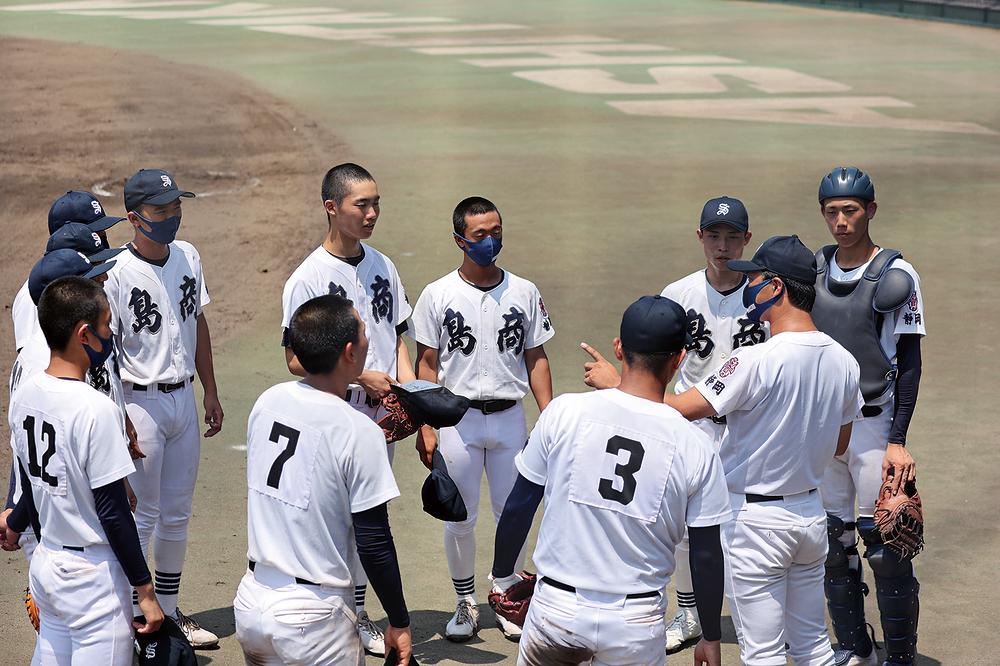 激戦必至のブロックに飛び込んだ島田商。絶対的エース新木柊(3年)を軸に結束するチームは、古豪復活をかけた戦いに挑んだ。(取材・栗山司) (2021年9月号掲載)