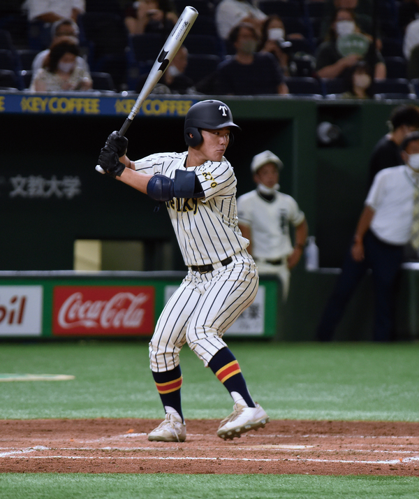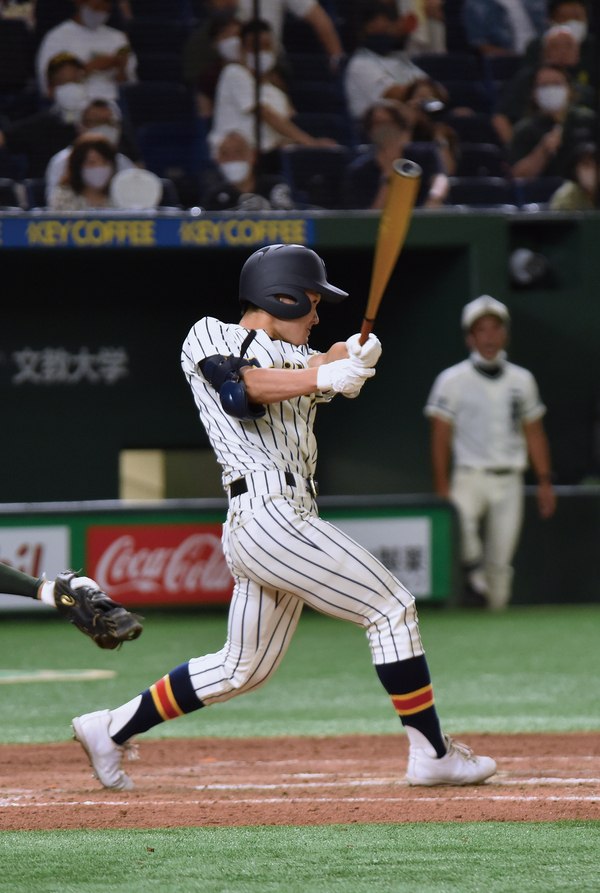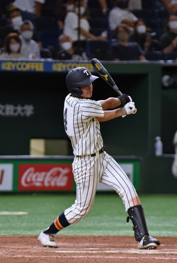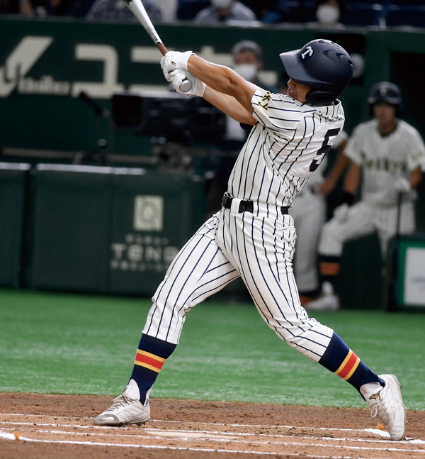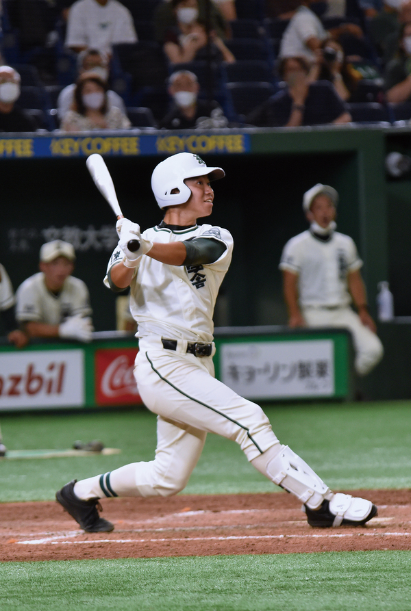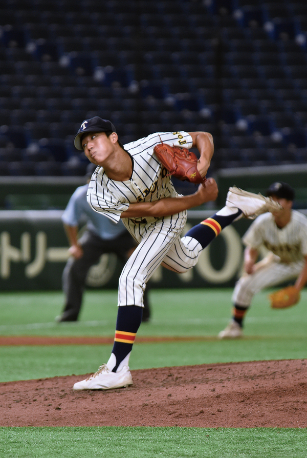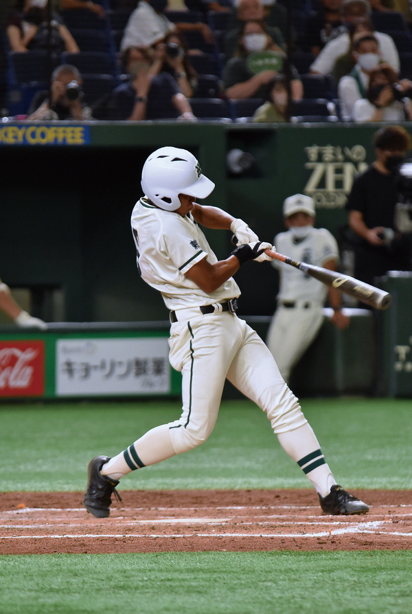 先制したのは帝京だった。二松学舎大附の先発・布施東海の立ち上がりを攻め、尾瀬雄大の右前タイムリーで1点を奪った。ゲームのポイントは、4回2死の二松学舎大附の投手交代。布施が2つの四死球を与えると、市原勝人監督は迷わずエース秋山正雲をマウンドへ。秋山はそのピンチを切り抜けると、続く5回の打席でチャンスを広げるタイムリーを放って、チームを勢いづけた。二松学舎大附はその回に、瀬谷大夢の2点二塁打などで4点を奪い、逆転に成功。ゲームの主導権をがっちりと手繰り寄せた。